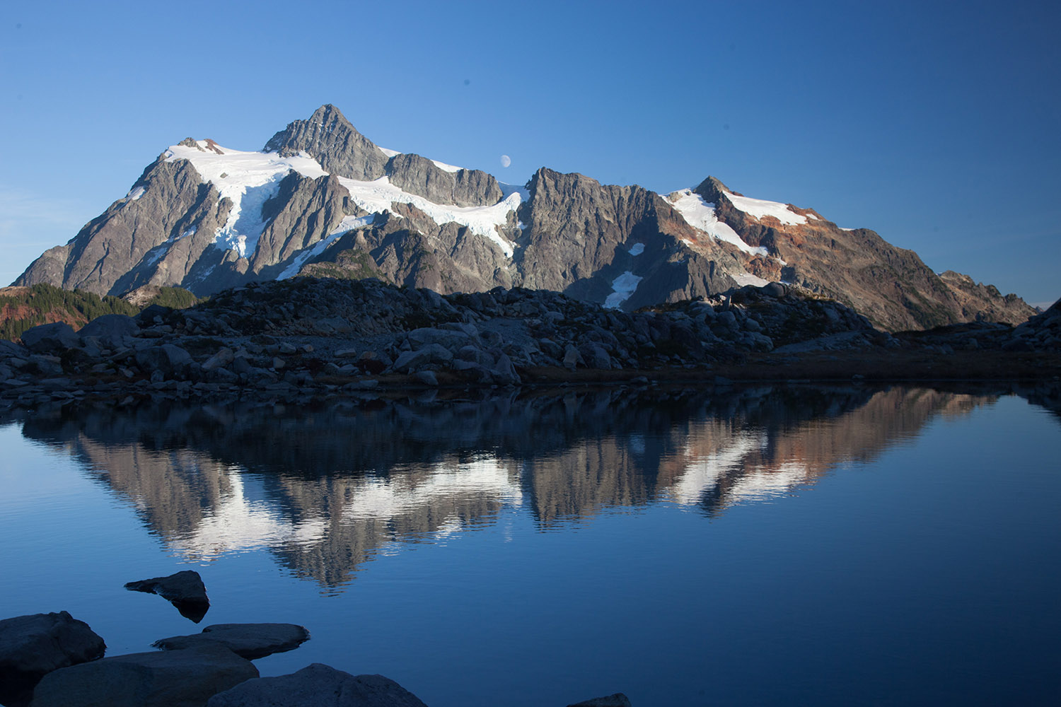 The rock of Mt. Shuksan belongs to the Easton Terrane, which, after combining with several other terranes, was accreted to the western edge of North America during the Cretaceous. Some of Shuksan's rocks are blueschists, which form under conditions of high pressures and relatively low temperatures, typical of subduction zones. Mt. Shuksan lies within the North Cascades National Park.